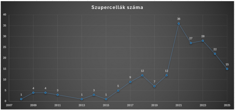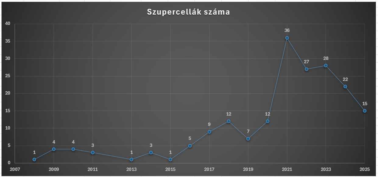 Az idei évben átlagosnál sokkal korábban indult be a zivatarszezon, meglehetősen szokatlan módon már március 11-től előfordultak zivatarok az országban. Augusztus 31-ig összesen 15 szupercellás zivatar alakult ki: 4 márciusban, 1 áprilisban, 3 májusban, 2 júniusban, 4 júliusban, illetve 1 augusztusban.