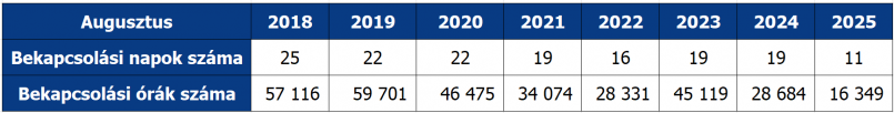 Az Országos Jégkármérséklő Rendszer talajgenerátorainak bekapcsolására augusztusban 11 napon volt szükség, ami az eddigi legkevesebb volt bekapcsolási nap volt 2018 óta!