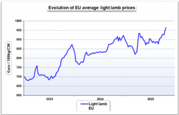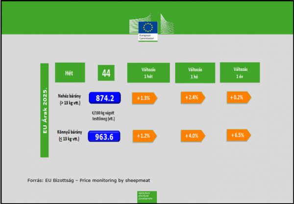 Az Európai Unióban 2025 negyvennegyedik hetében mind a nehéz bárányár, mind pedig a könnyű bárányár pedig emelkedést mutatott az előző heti árakhoz viszonyítva.