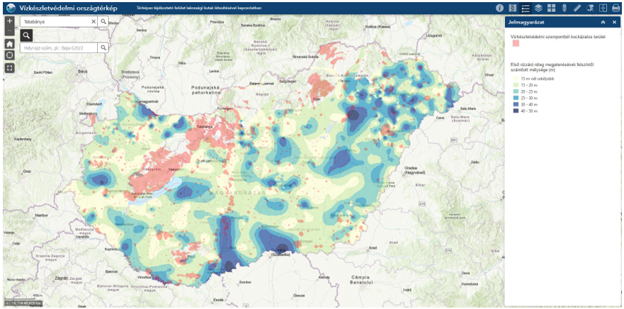 1. ábra: a vízkészletvédelmi országtérkép webes felülete (https://geoportal.vizugy.hu/vizkeszletvedelem/)